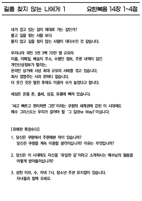 길을 찾지 않는 나에게 626.01.11 주일예배