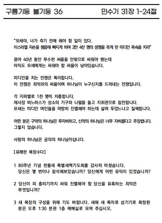 구름 기둥 불 기둥 2325.11.7 80주년한품세특별새벽기도회